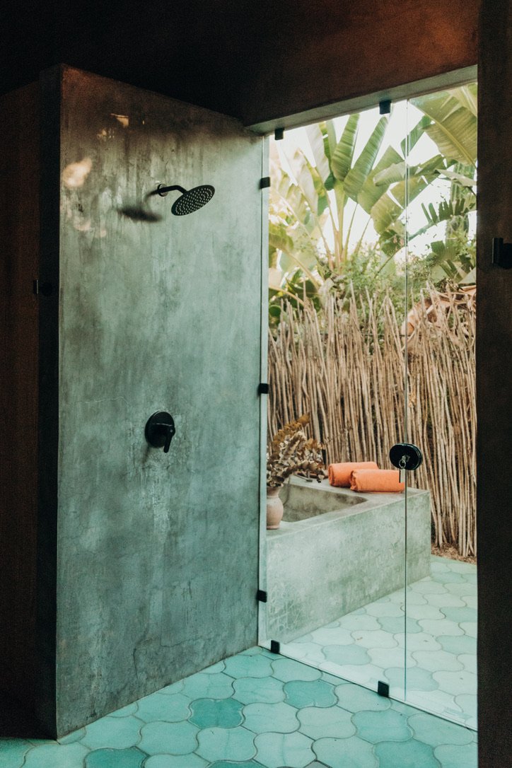outdoor shower; and a sprawling dining