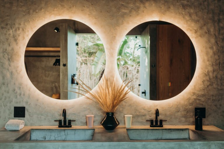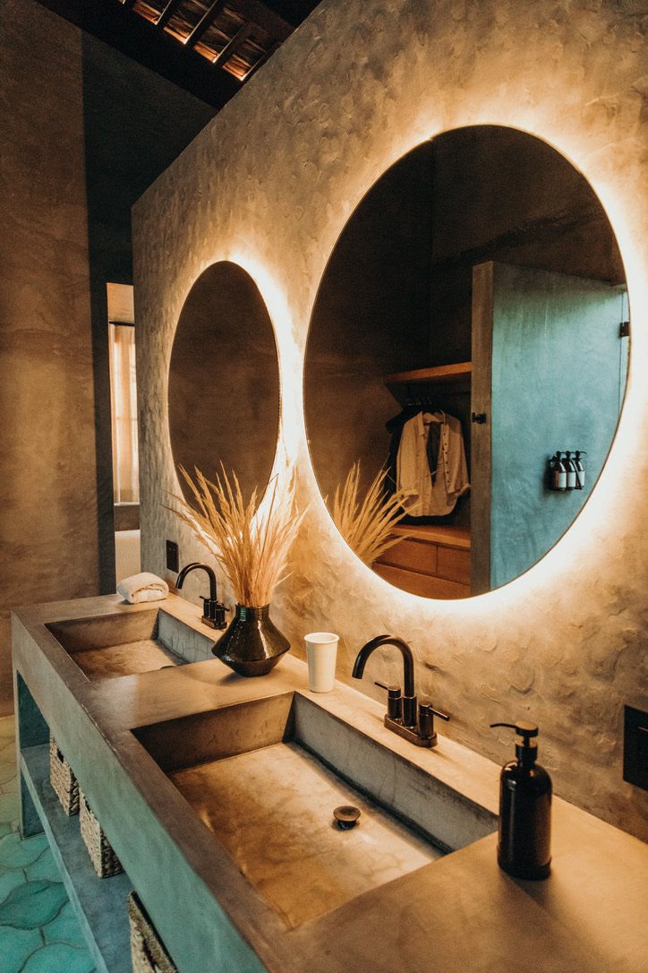 king size bed, double sink, outdoor