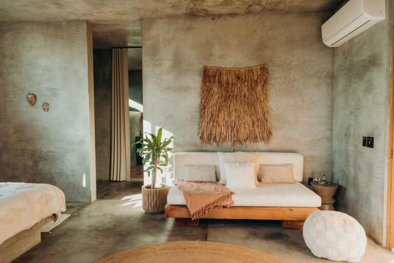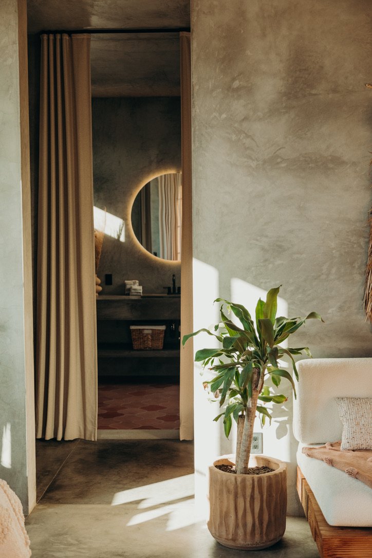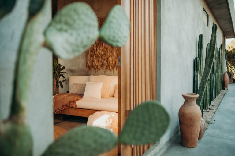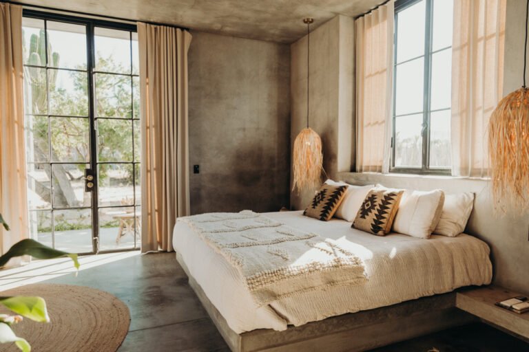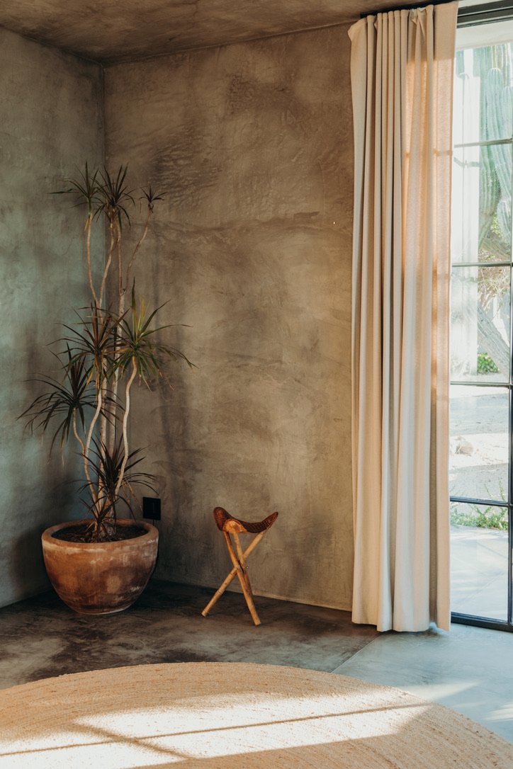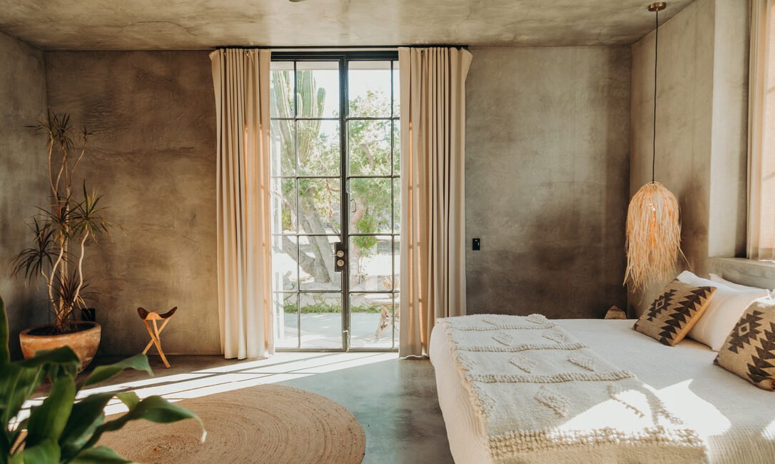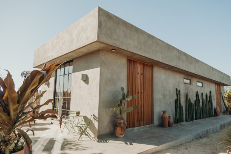 Casa de Zorros combines the best of Baja’s iconic outdoor living and welcoming interiors. A tasteful balance between expansive high ceilings, minimalist concrete design and the coziest finishes and details, our modern desert escape is divided into three buildings, carefully arranged around ancient native trees, saguaro cacti and a heated swimming pool. And it has all the comforts you need for a long- or short-term stay.
